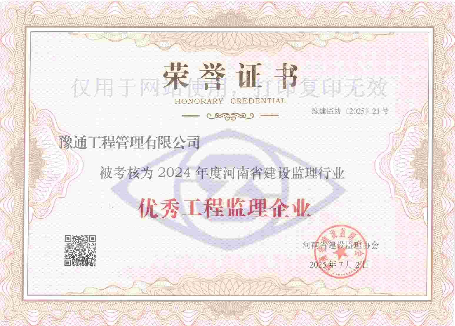 近日,河南省建設監理協會發布了《關于公布2024年度會員單位和從業人員考核結果的通知》,我公司榮獲“2024年度優秀工程監理企業”稱號。